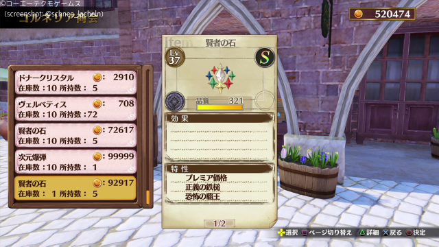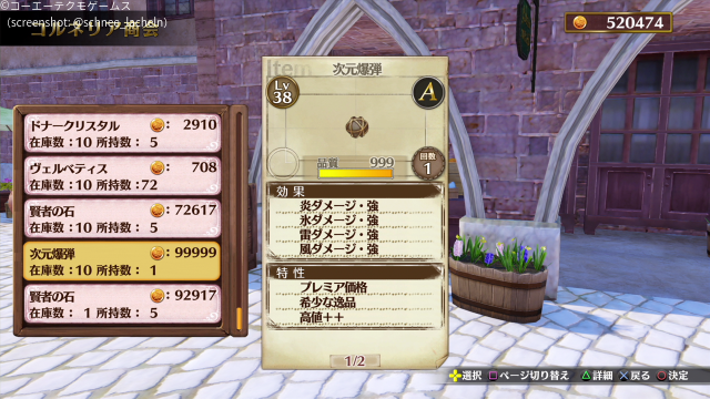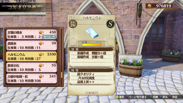 お店でアイテムを売る時の売却価格、そしてコルネリアの量販店にアイテムを登録した時の量販価格の計算について紹介します。